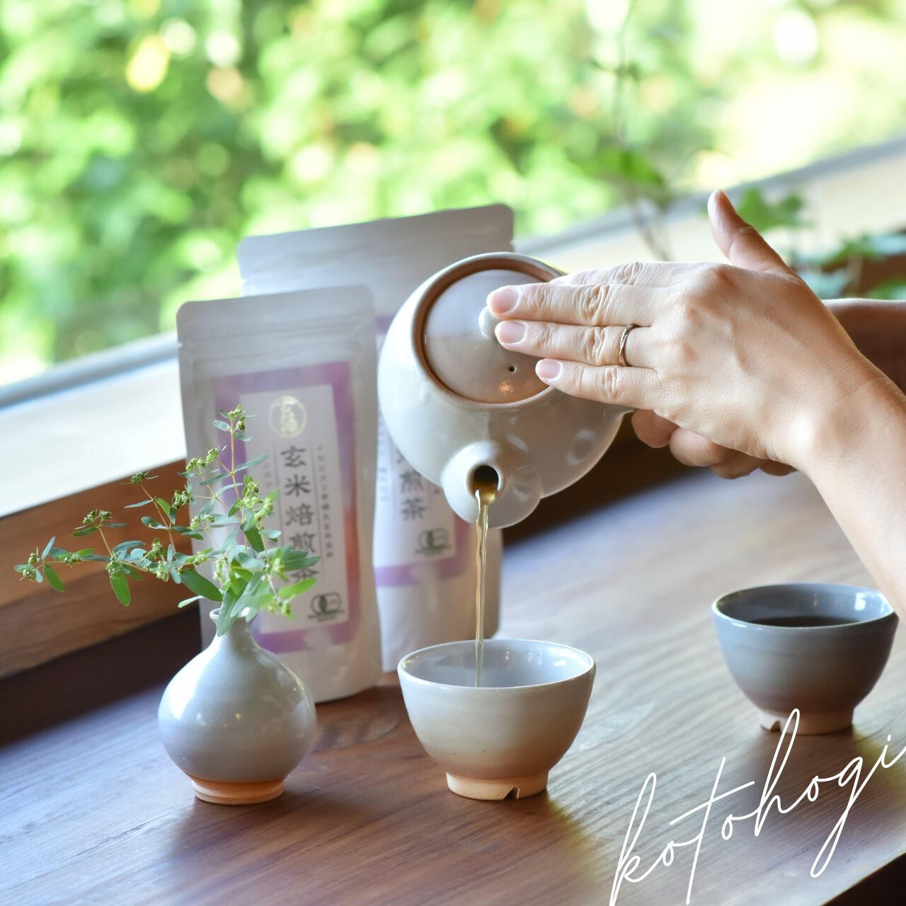 寿ぎの玄米焙煎茶は、イセヒカリ有機丸玄米のみをじっくり焙煎した陽性ノンカフェイン飲料です。